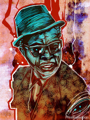 These images seek to reinvigorate the genius of the Blues and give praise to the pioneering Prometheus-like "thieves' who stole this energetic and powerful expression at the crossroads.