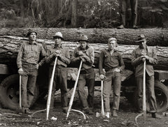 Five members of Ola self-help sawmill co-op. Gem County, Idaho. Photographed by WPA Photographer Dorothea Lange in October 1939 on 4x5 b&w negative.