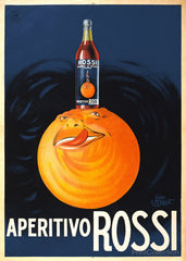 Poster showing a bottle of Martini & Rossi's Aperitivo resting on top of an orange with a face licking its lips.