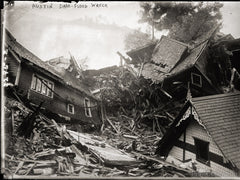 Aftermath of a flood of the Austin Dam on some homes between 1910 and 1915. Photographed by the Bain News Service on 5x7 glass plate negative.