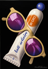 Bi-Oro, anti-solaire Marque "Ciba" by Niklaus Stoecklin. First published in 1941 by Bí¢le : Wassermann S.A. as a color lithograph at 127.3 x 90.1 cm.Advertising poster for suntan lotion showing a pair of sunglasses and tube of suntan lotion.
