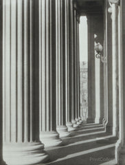 In 1922 this image was captured by Frances Spalding using a pinhole camera. Patterns are created by columns shadows at the Low Memorial Library at Columbia University in New York.
