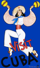 Poster showing a woman dancing with maracas in a courtyard. Printed in Cuba by Artes Graficas, S.A.Great care has been taken to reproduce this image for you. We stand behind the quality of your print with a 100% customer satisfaction guarantee.
