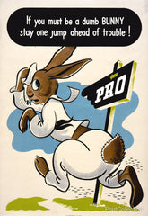 This 1945 World War poster highlights the need for health education and the prevention of sexually transmitted diseases. Don't be a dumb bunny! But if you must...stay one jump ahead of trouble!
