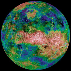 The hemispheric view of Venus, as revealed by more than a decade of radar investigations culminating in the 1990-1994 Magellan mission, is centered at 90 degrees east longitude. The Magellan spacecraft imaged more than 98% of Venus at a resolution of about 100 meters; the effective resolution of this image is about 3 km. A mosaic of the Magellan images (most with illumination from the west) forms the image base. Gaps in the Magellan coverage were filled with images from the Earth-based Arecibo radar in a region centered roughly on 0 degree latitude and longitude, and with a neutral tone elsewhere (primarily near the south pole). The composite image was processed to improve contrast and to emphasize small features, and was color-coded to represent elevation. Gaps in the elevation data from the Magellan radar altimeter were filled with altimetry from the Venera spacecraft and the U.S. Pioneer Venus missions. An orthographic projection was used, simulating a distant view of one hemisphere of the planet. The Magellan mission was managed for NASA by Jet Propulsion Laboratory (JPL), Pasadena, CA. Data processed by JPL, the Massachusetts Institute of Technology, Cambridge, MA, and the U.S. Geological Survey, Flagstaff, AZ.