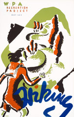 Hiking WPA Recreation Project Dist. No. 2 / / by artist Shari Weisberg for the Federal Art Project arond 1936 as a color silkscreen. Poster showing a woman hiking.