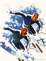 Joseph Binder created this ad for Jantzen in 1947. Showing man and woman skiing.