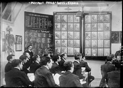 Portrait Parle class, France, photographed by the Bain News Service around 1910 on 5x7 glass plate negative. Photo shows class studying the Bertillon method of criminal identification, developed by the French criminologist Alphonse Bertillon (1853-1914).