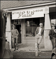 On main street of potato town during harvest season. Merrill, Oregon photographed by Dorothea Lange October 1939 on 2 1/4 x 2 1/4 inch nitrate film.