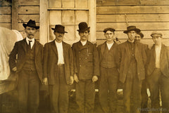 Maple Mill, Dillon, S.C. Tallest man is the Baptist preacher J .H. Blanton. His son, the third from him, works in mill. Location: Dillon, South Carolina. Photographed by Lewis Hine in December of 1908.