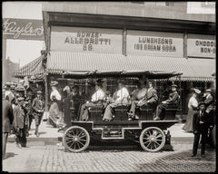 Seeing Chicago by Autobus, photograph by Hans Behm for the Detroit Publishing Company from the Rush St. Bridge, Chicago, Ill. Shot on 8x10 glass plate negative around 1905.