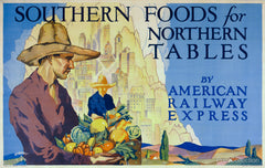 Southern foods for northern tables by American Railway Express created by Robert E. Lee in 1927. Published in the USA by Wightman Litho & Printing Corp. Printed as a chromolithograph; 90.6 x 141 cm.