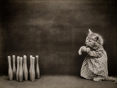 Ten Pins, Bowling with Cats, photographed by Harry Whittier Frees, June 24, 1914. Photograph shows a kitten preparing to bowl.