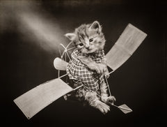 The Aviator with Cats, photographed by Harry Whittier Frees, June 24, 1914. Photograph shows a kitten wearing a dress placed inside a toy glider.