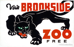 Visit Brookside Zoo Free. Created by teh Federal Art Project of Chicago Illinois in 1937 as a color silkscreen.Leopard with copy text. Attributed to Carken.