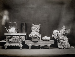Washing Dishes, photographed by Harry Whittier Frees, June 24, 1914. Photograph shows two kittens wearing clothes and washing dishes.