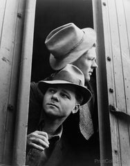 "Unemployed kids on the road, looking out for the R.R. cops" not sure if you can call these guys "Kids". They are men. Photographed by Hansel Mieth in 1936.